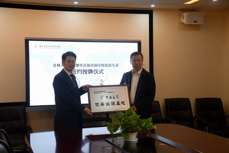 招生宣传组张兴林书记、王晰巍副院长等来到成都新都一中,成都实验外国语学校、树德中学进行吉林大学优秀生源基地授牌。
