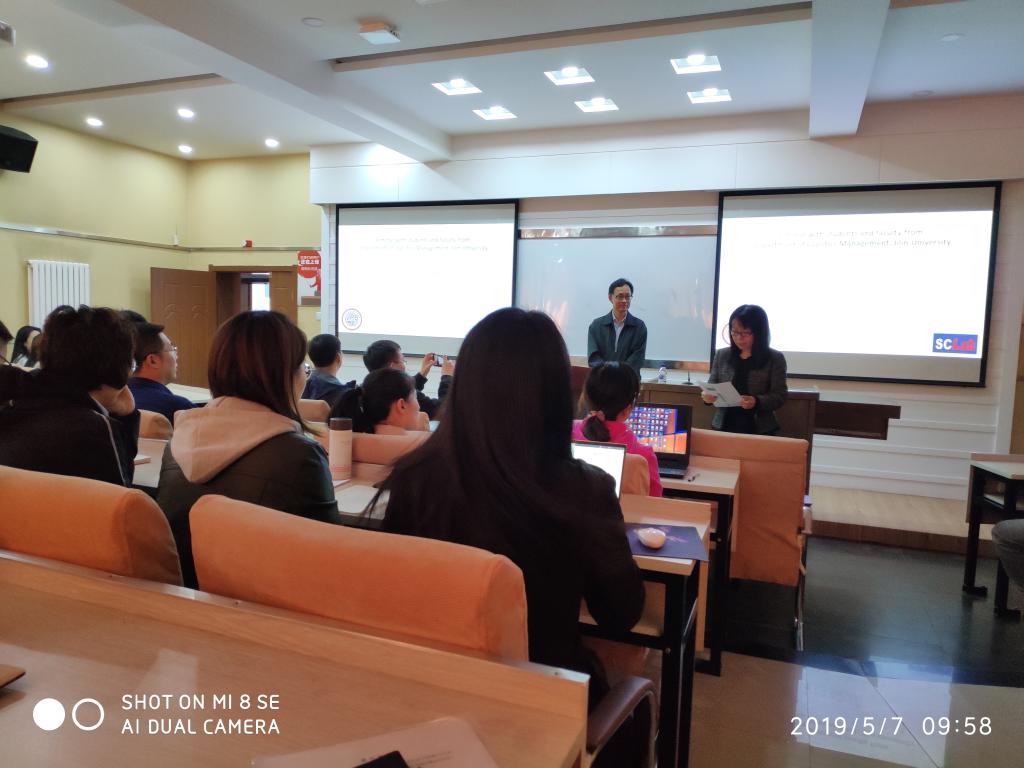 师生在EMBA教室做了一场名为Research Experience Sharing的精彩学术报告,全场座无虚席。报告由樊雪梅副院长主持。