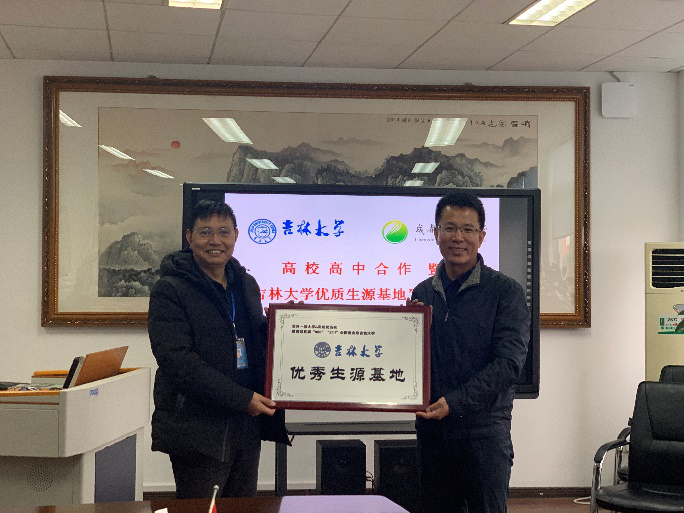 12月20日走访龙泉中学,会见党委书记、校长徐本淳、副校长李培翔、陈泽刚、教务主任杨明,授牌“吉林大学优秀生源基地”,并就续更加深入的沟通交流及持续性的招生宣传工作开展达成了共识。