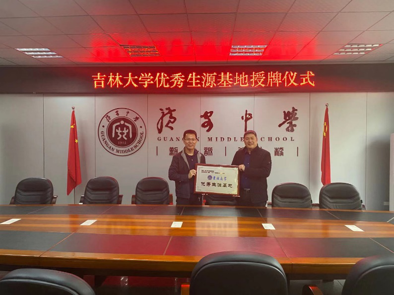 12月18日走访广安中学,会见黄校长、王主任,开展招生宣讲工作,对优秀生源基地进行回访,并授牌“吉林大学优秀生源基地”。