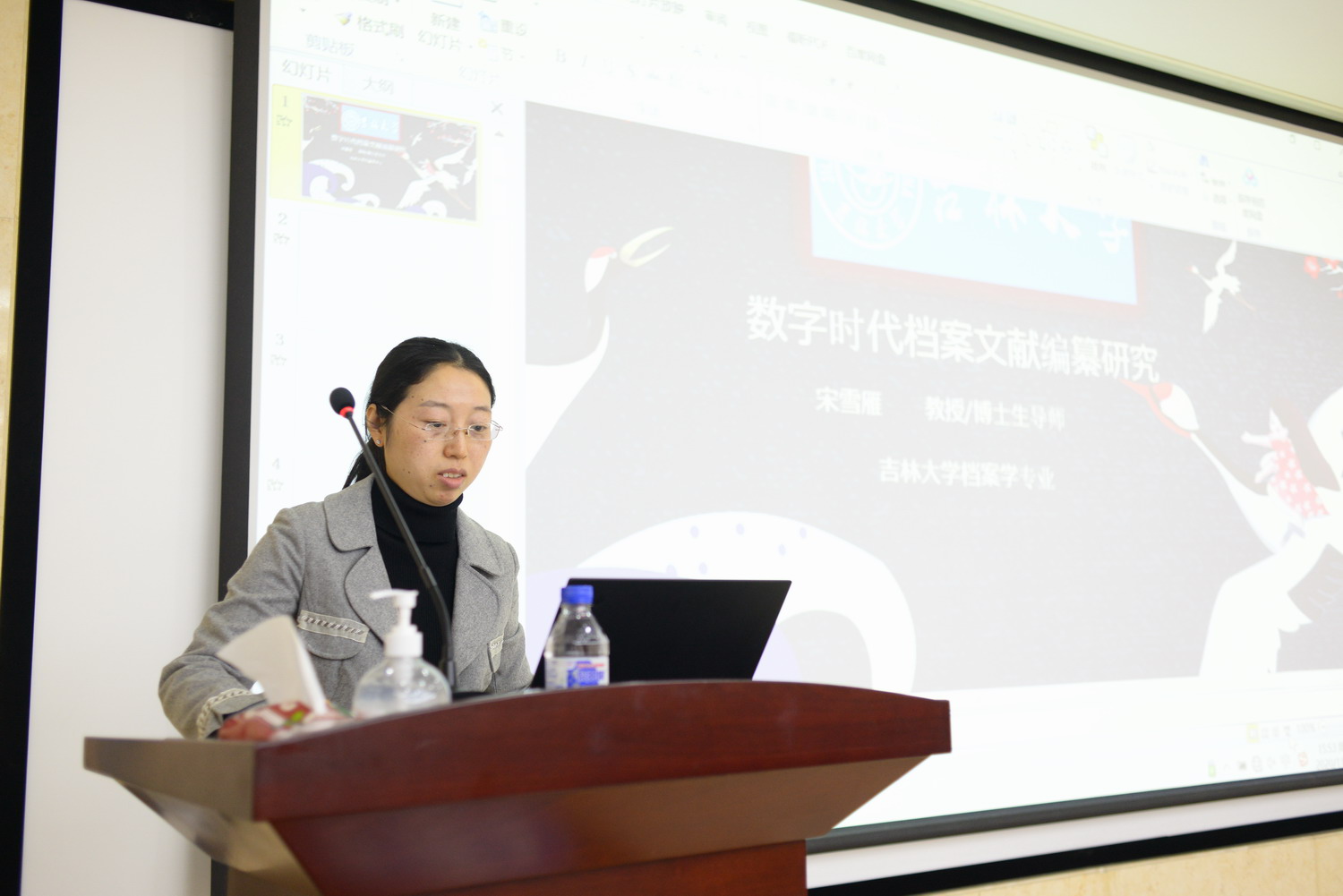 宋雪雁教授以《数字时代档案文献编纂与成果利用研究》为报告主题,结合自己当前的研究内容与研究成果,就数字时代档案文献编纂的背景、现状、编纂模式等内容展开报告。