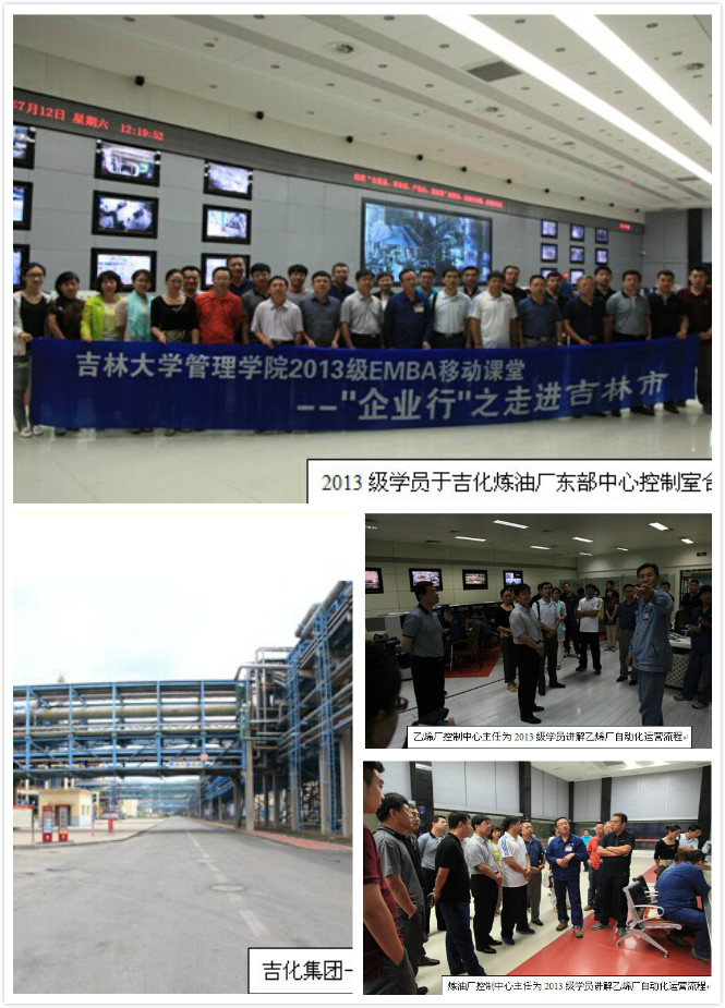 经过简单的迎接仪式,我们踏上吉林之旅的第一站——中国石油吉林石化分公司。中国石油吉林石化分公司是国家“一五”期间兴建的第一个大型化工生产基地。作为新中国化学工业的摇篮和化工战线上的一面旗帜,吉化在50年的岁月里,为我国经济建设做出了重要贡献。公司先后荣获国家企业管理优秀奖、技术进步企业全优奖、首批特大型企业质量管理奖、企业改革创新奖等60多项国家级荣誉和奖励。在学员周宏的安排下我们先后参观了吉化下属的乙烯厂、炼油厂的中心控制室及厂房。