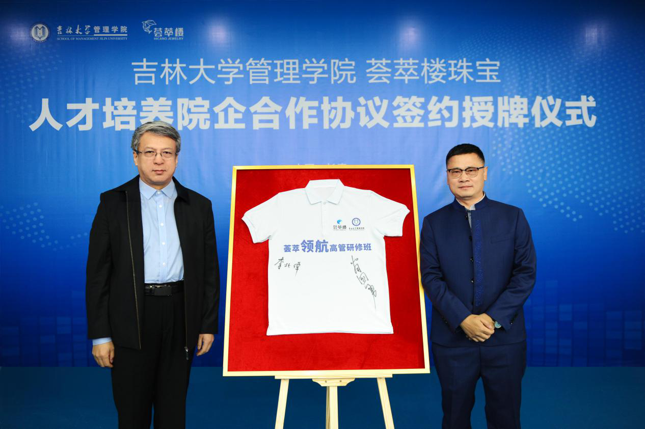 与荟萃楼珠宝集团人才培养院企合作协议签约授牌仪式暨领航高管研修班开班典礼,在吉林大学南岭校区逸夫教育大楼行知厅举行。深圳景福元记珠宝有限公司总裁翁国勇先生、吉林大学管理炸金花游戏