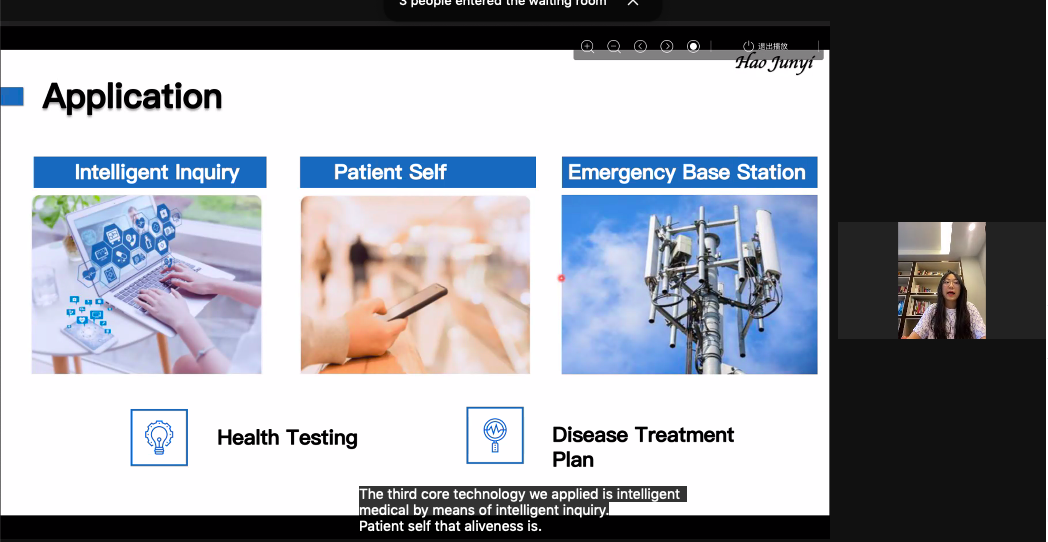 第五组的研究主题为“人工智能技术应用于未来消费品的三种方式”。主要研究内容为将应用计算机视觉、语言识别、NLP等一系列人工智能技术,实现监控警报、聊天陪伴以及健康问诊等一系列相关功能,做出一个较为完整的养老机器人,并期望规模服务后形成一个较为完整的养老服务系统。